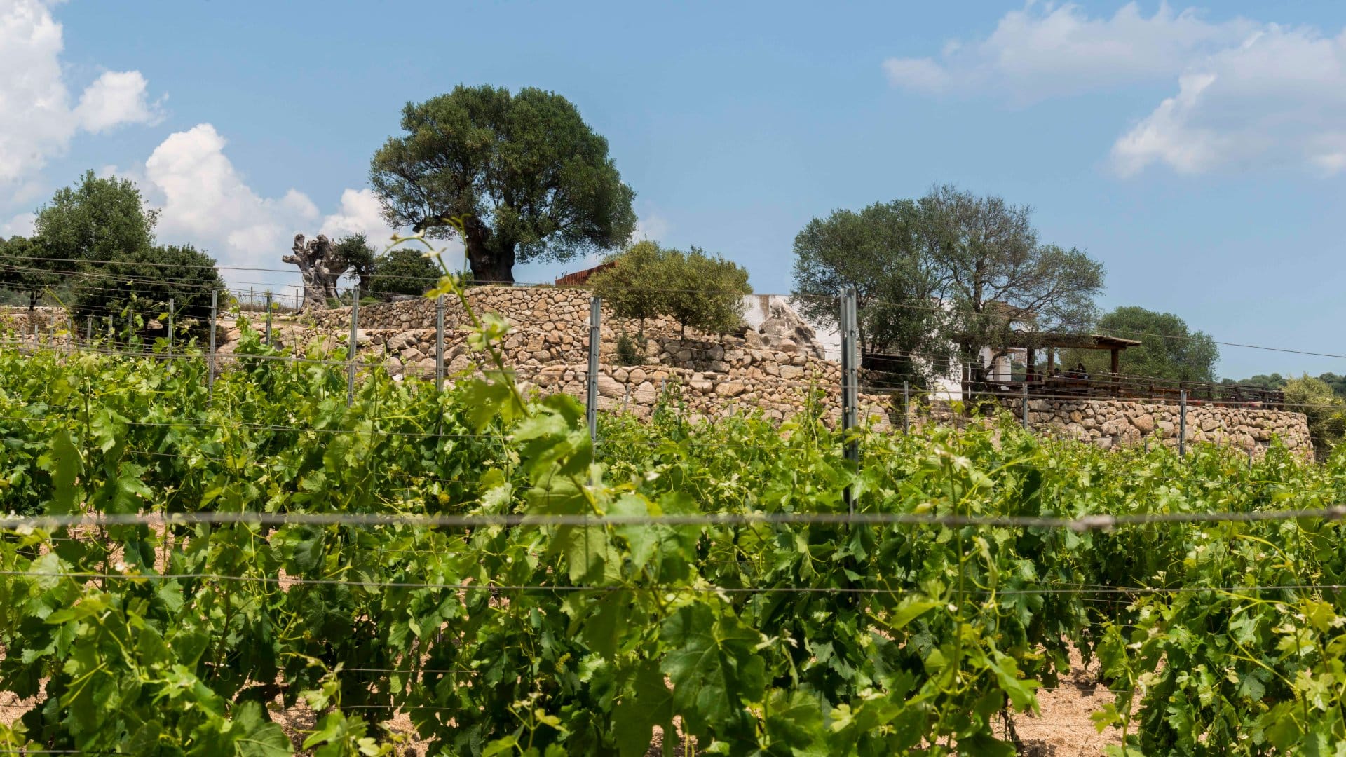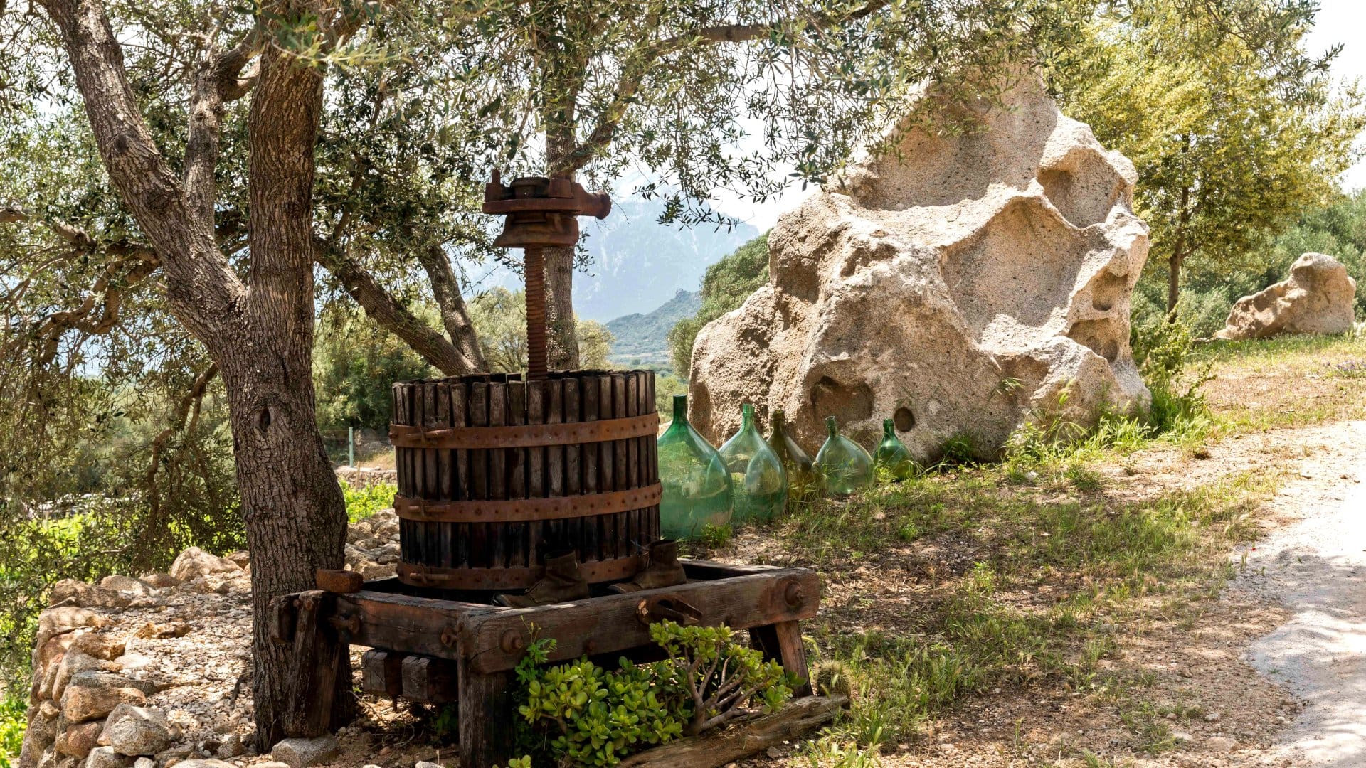 Historically, the land that hosts the vineyard has been a place of passage where shepherds would stop for a brief rest in the shade of thousand-year-old olive trees near a spring.
