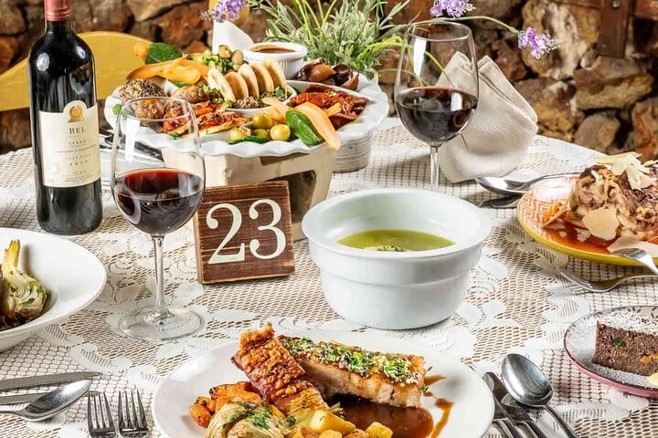 Free-flowing local wine, mineral water, and coffee are included during your dinner.