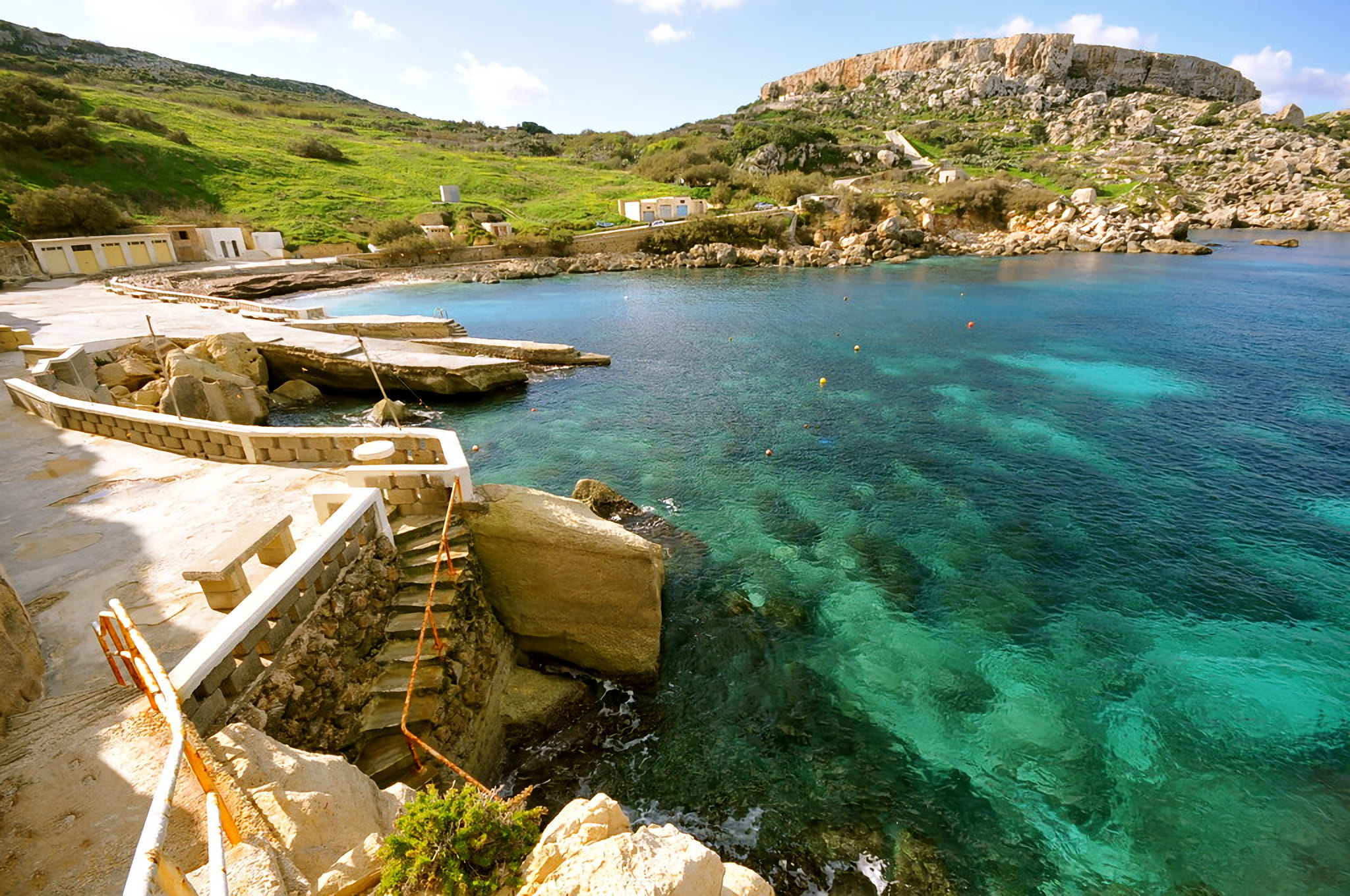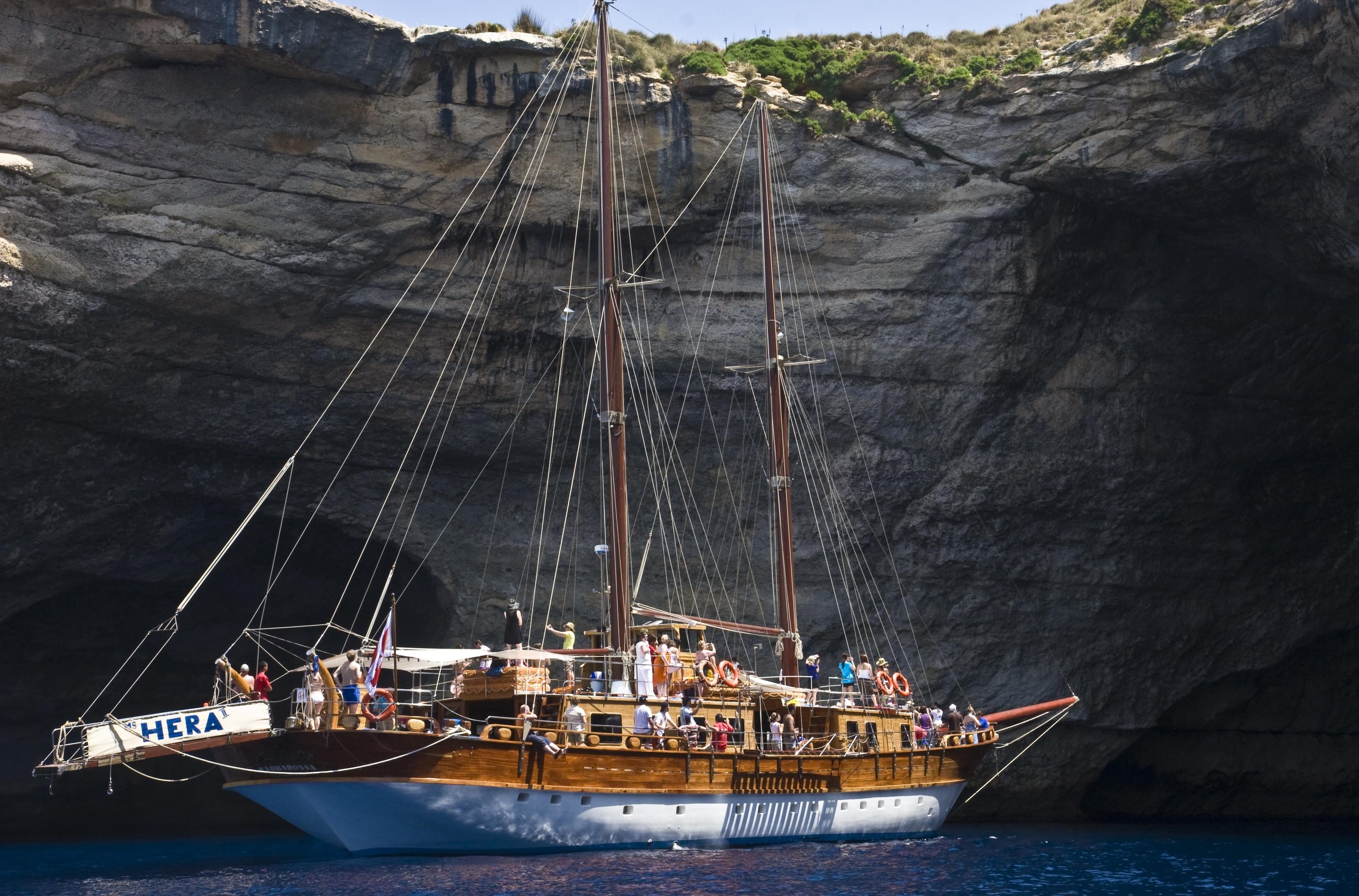 Our first swim stop will be at St. Paul's Bay or beneath Selmun, depending on the weather. We then proceed towards the island of Gozo, where we shall stop for a second swim at Daħlet Qorrot Bay, one of Gozo's most picturesque bays.