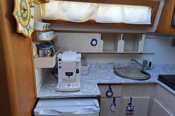 While sailing you can admire the coast from the Fly Bridge or linger in the lounge for a chat with a drink.