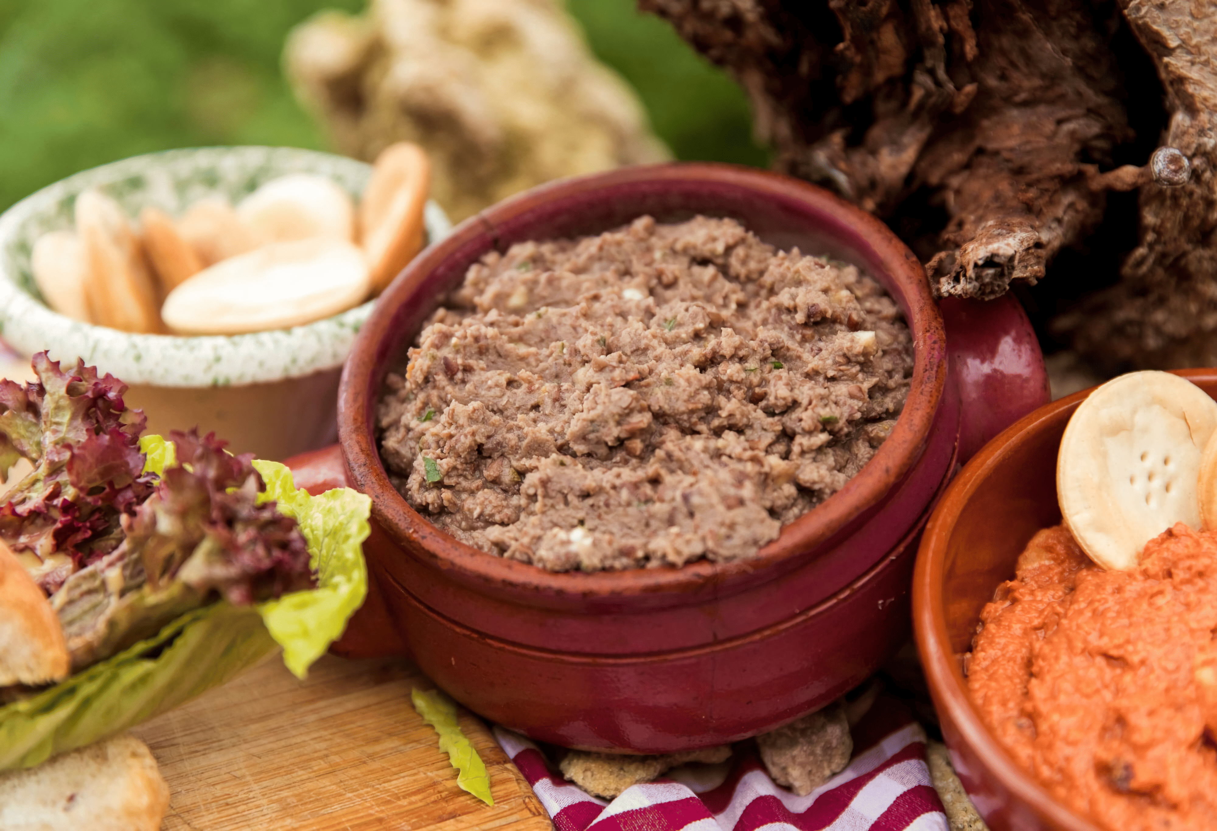 • Maltese Platter: Gbejniet (peppered cheeselets), Maltese stuffed olives, Bigilla (broad bean dip), Maltese sausage, and water biscuits